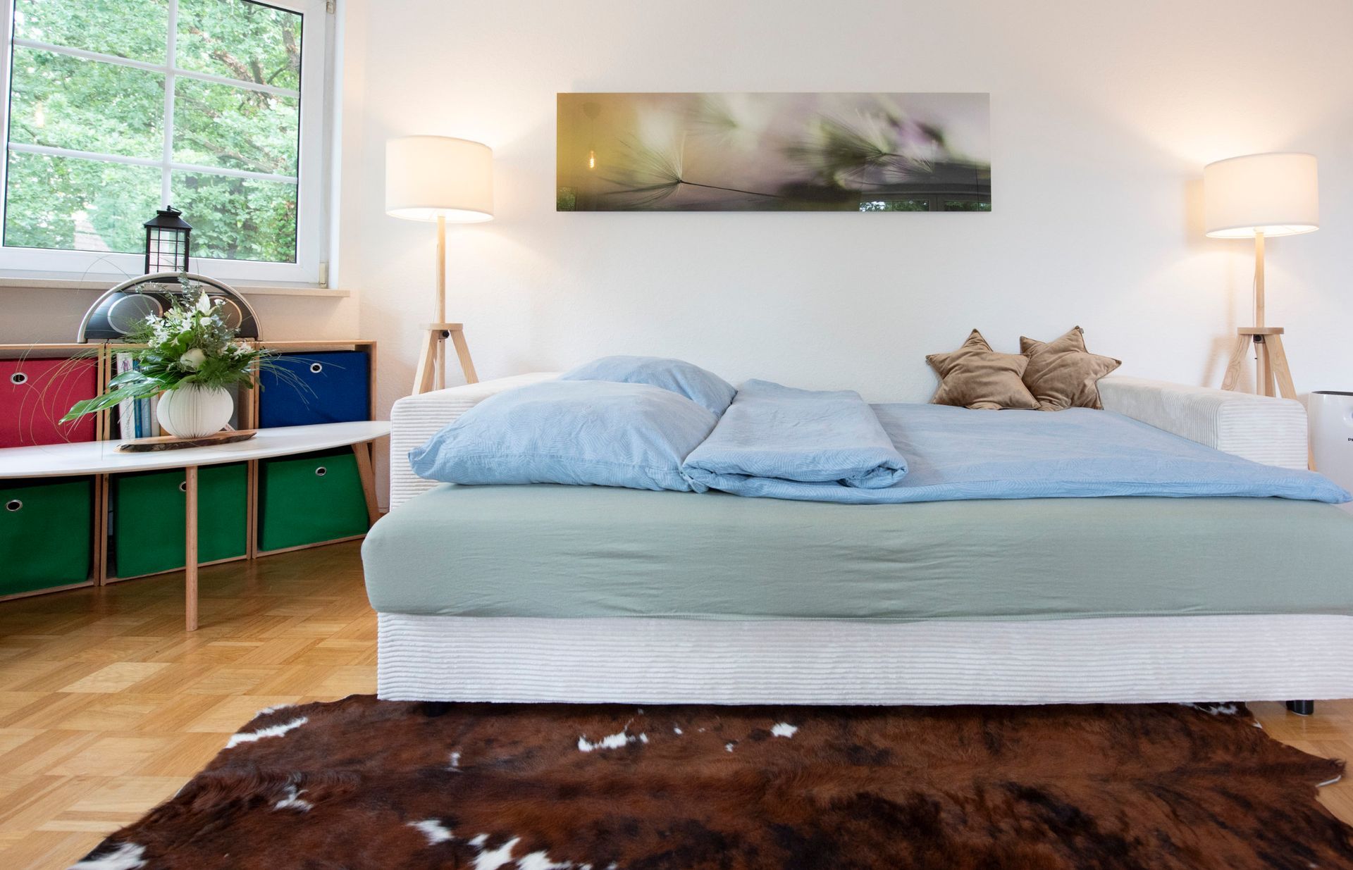 Die gemütliche Souterrain Wohnung mit zweieinhalb Zimmern und Platz für 2 erwachsene Personen. Küche, Büro und Vollbad bieten alles was eine Unterkunft haben darf.